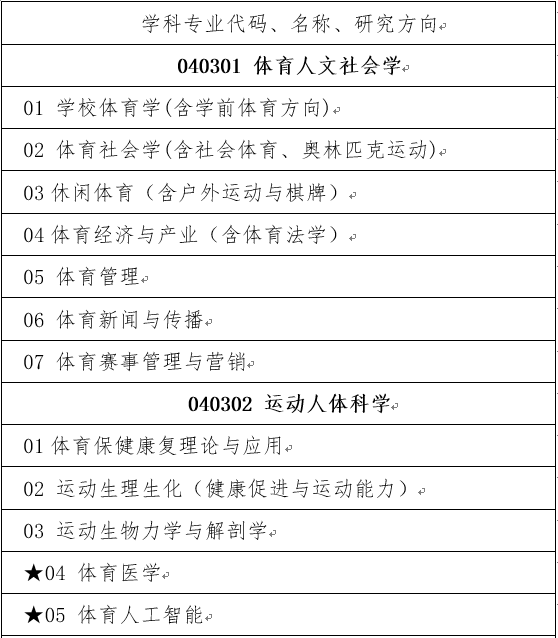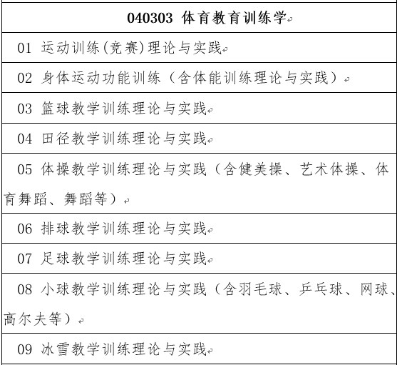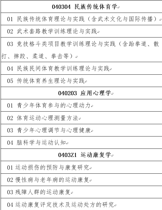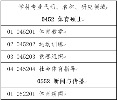 首都体育学院硕士学位研究生招生专业目录