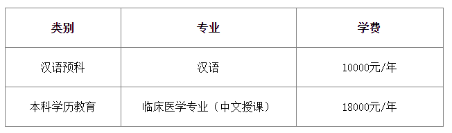 注:临床医学留学学制6年(1年汉语预科+5年临床医学专业学习),均需正常缴纳学费(含最后一年在中国实习);最后一年留学生因特殊需要返回本国实习的,实习当年需缴纳学费3000元。