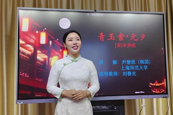 At the recent World Chinese Language Conference held in Beijing, Li Hongyan, a Chinese language teacher for international students at Jiangsu University, was honored with the title of "Best Teacher," with her Chinese character course also being recognized as "Best Course".