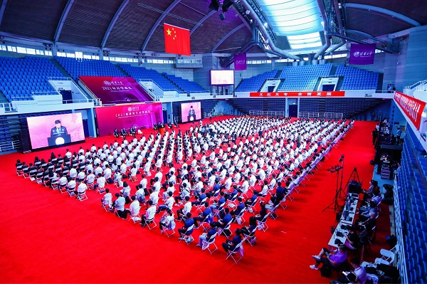 Adopting anti-epidemic prevention and control measures, Tsinghua University held the opening ceremony in a hybrid online and offline format. Besides the main venue, 35 different venues were set up across campus for the new graduates to witness the ceremony. The event was also live-streamed worldwide on various social media platforms in both Chinese and English.