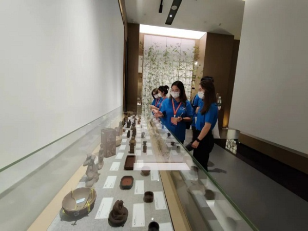 While listening to an explanation by guides from the museum, the foreigners admired the cultural relics and exquisite purple clay works on display.