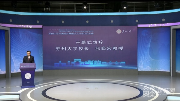 Zhang Xiaohong, the principal of Soochow University in Suzhou, Jiangsu, gives a speech at the opening ceremony of the 2022 Dongwu Forum for High-level Overseas Talents. [Photo/ourjiangsu.com]