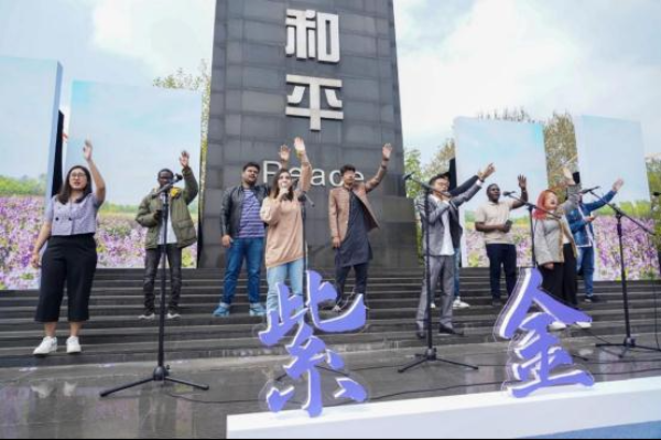 International volunteers sing Heal the World during the event. [Photo/js.news.cn]