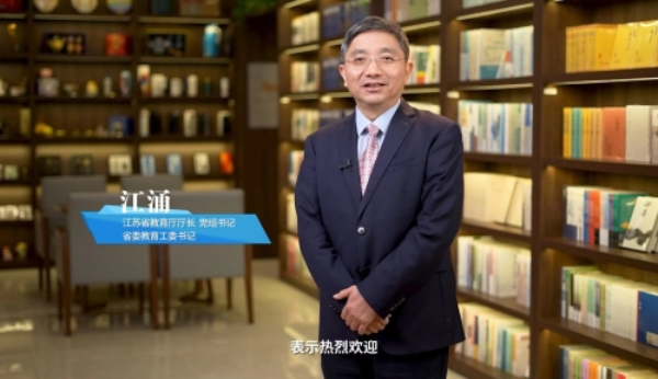 Jiang Yong, director-general of the Jiangsu Provincial Department of Education, addresses the conference via video link. [Photo/jyt.jiangsu.gov.cn]