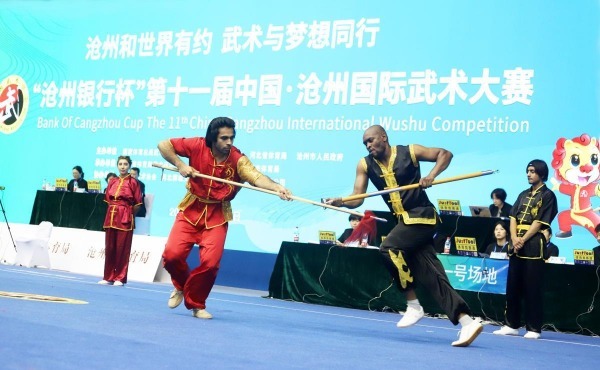 Martial artists compete in the 11th China Cangzhou International Wushu Competition in Cangzhou, Hebei province. [Photo by Wei Zhiguang/For chinadaily.com.cn]