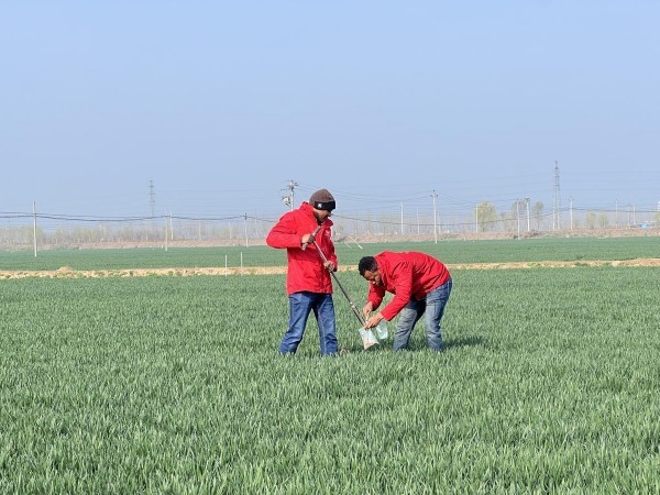 African students collect soil samples in a wheat field in Quzhou county, Handan, Hebei province. [Photo provided to chinadaily.com.cn]