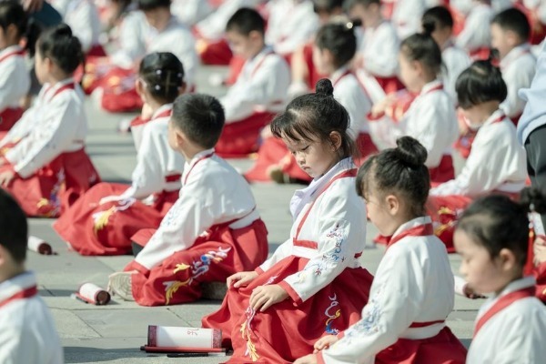 Students participate in the First Writing Ceremony at the Confucius Academy of Guiyang in Guizhou province on Sept 19. [Photo by Zhang Jie/provided to chinadaily.com.cn]