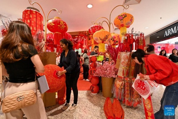 People buy decorations for the upcoming Spring Festival in Kuala Lumpur, Malaysia, Jan 19, 2025. [Photo/Xinhua]
