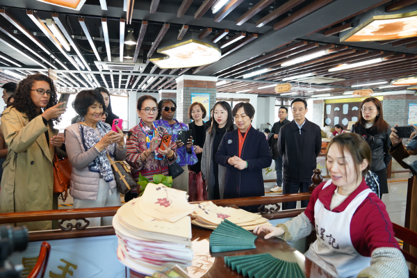 At the "Perceiving China, Beauty and Harmony" event on March 11, a delegation comprising spouses of ambassadors to China from countries including Jamaica, Argentina, Indonesia, Latvia and Portugal went to Hangzhou in Zhejiang province to experience the local intangible cultural heritage.