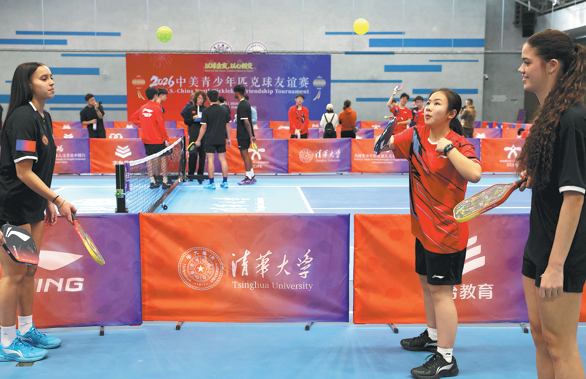 Chinese and American youth came together at Tsinghua University on Monday for a friendly pickleball tournament, marking the final leg of a 10-day exchange tour for US students celebrating Spring Festival in China.